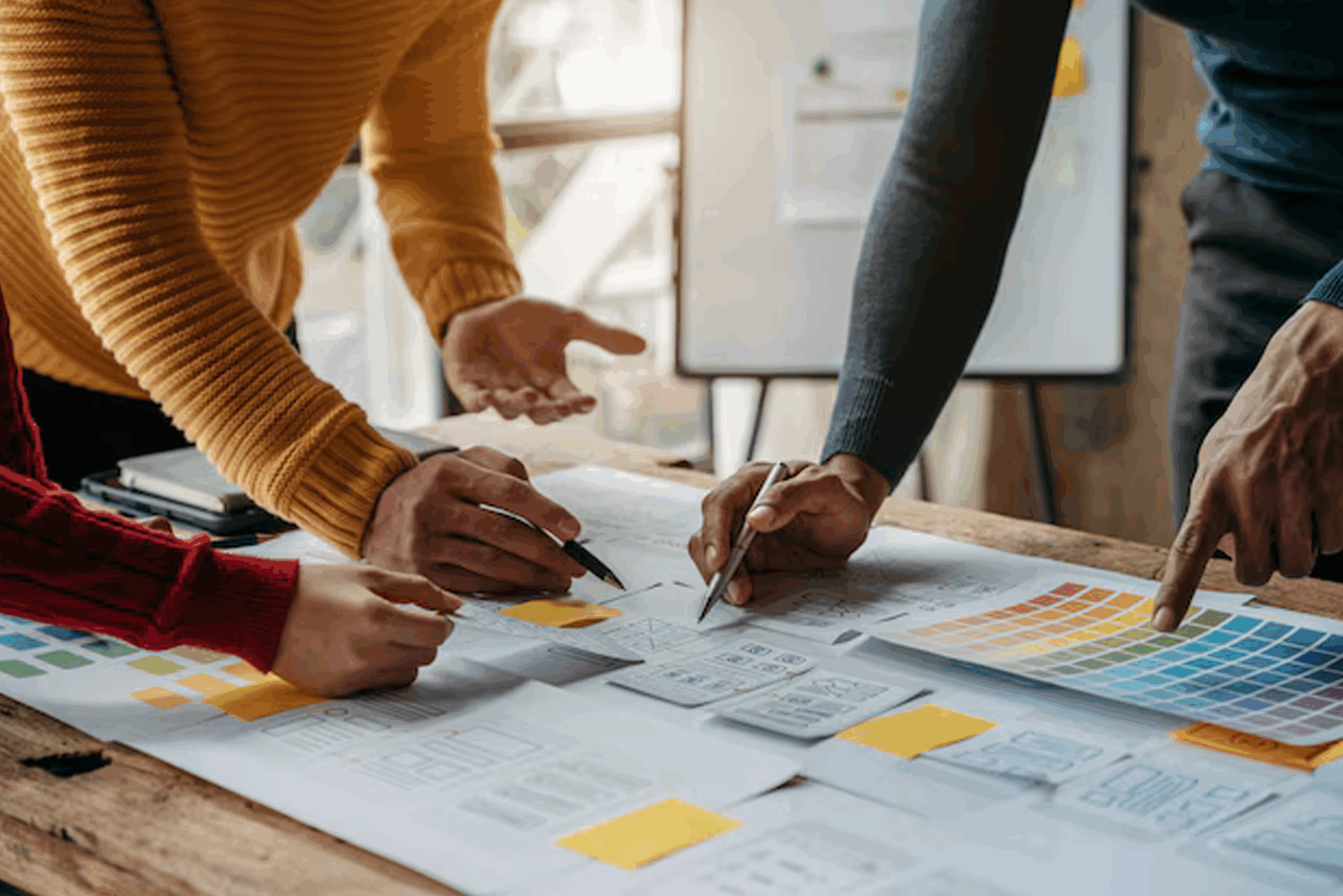 실루엣, 디테일, 컬러, 소재 감도 등을 반영하여 디자인 시안(도식화, CAD 등)